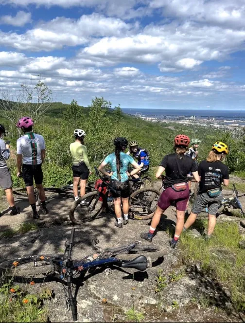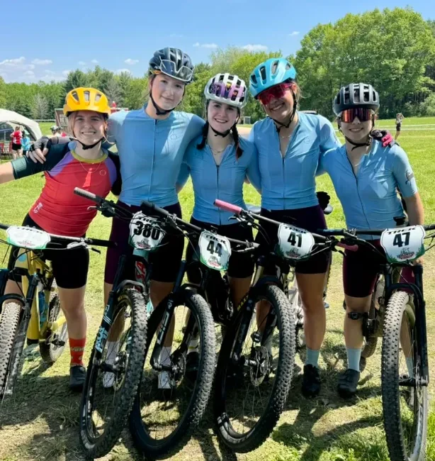 We work primarily with intermediate-to-advanced riders who are looking for an equity-focused, fun-loving community. Our Devo Team includes a range of on- and off-bike programming, including femme-only options. Although we are not a performance team, we love supporting our riders who enjoy racing.